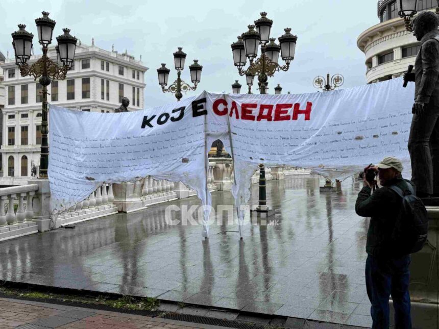 Со транспарент на кој се испишани имињата на жртви од повеќе несреќи во Македонија, и оставен простор за поминување на луѓе, иницијативата “Кој е следен?” направи герила акција пред седиштето…